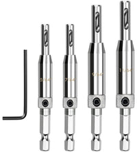 Package contents: 4 x hinge drill bits + 1 x Allen key, silver, size: 5/64 inch, 7/64 inch, 9/64 inch, 11/64 inch, enough for daily use.
